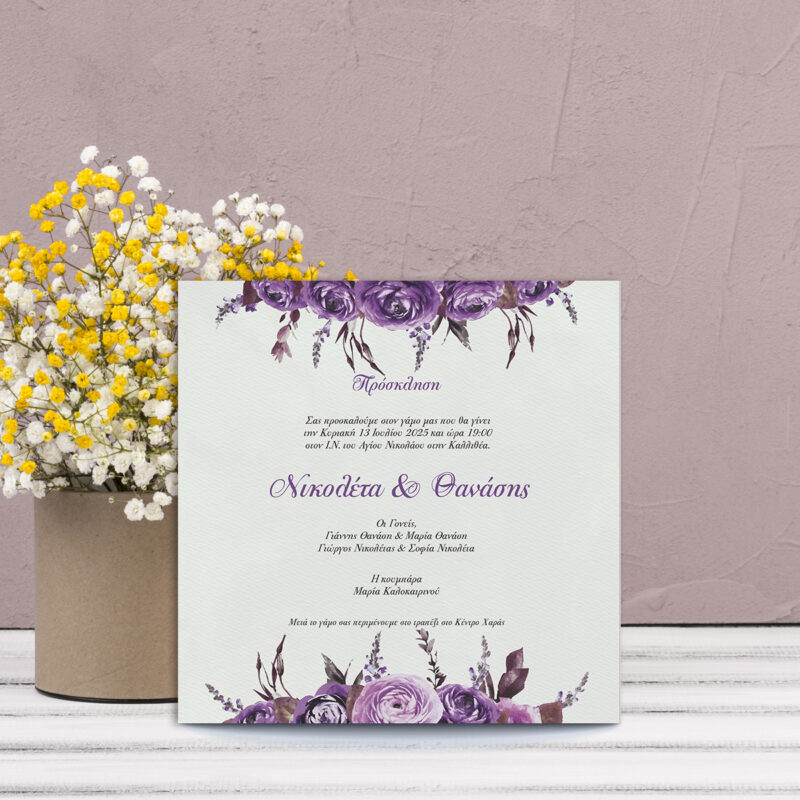 Προσκλητήριο Γάμου “Purple Roses” 155×155 χιλ.