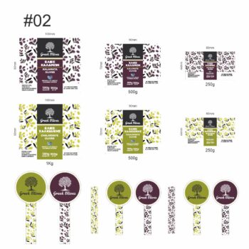 Συμπλήρωσε τις πληροφορίες που επιθυμείς να αναγράφονται στην ετικέτα (π.χ. ελιές καλαμών κ.λπ.). Το τελικό αποτέλεσμα θα είναι όπως στο εικονιζόμενο σχέδιο, πλήρως προσαρμοσμένο στα δικά σου στοιχεία.