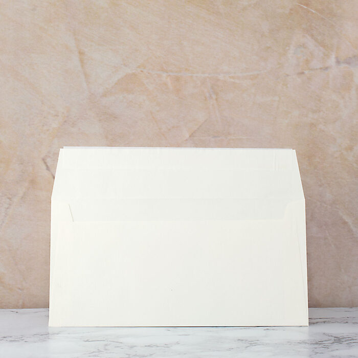 Φάκελος 11×22 καρέ αυτοκόλλητος, 120γρ., ανάγλυφο εκρού Modigliani Beige 1083 τύπου αεροπορικό γομέ. Ιδανική επιλογή για γάμο, βάπτιση ή εκδήλωση.