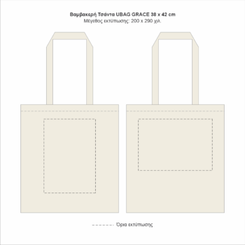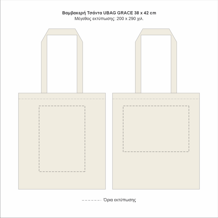 Βαμβακερή τσάντα 10 λίτρων σε φυσικό χρώμα με διαστάσεις 38×42 εκ. και μακριά χερούλια. Δυνατότητα εκτύπωσης 20×29 εκ. σε μία ή δύο όψεις.