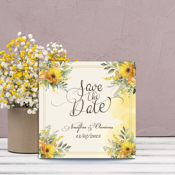 Προσκλητήριο Γάμου “Yellow Daisies” – Διαστάσεις 155×155 χιλ.