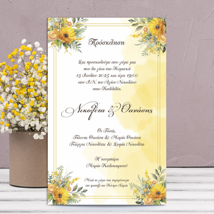 Προσκλητήριο Γάμου “Yellow Daisies” – Διαστάσεις 210×140 χιλ.
